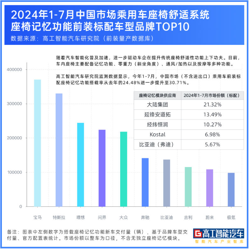 9月,高工智能汽车研究院发布座椅记忆功能行业榜单,经纬恒润凭借卓越的技术实力,在2024年1-7月中国乘用车座椅记忆功能前装标配车型品牌榜单中,荣登供应商前三,彰显其在智能车身领域的显著竞争力。